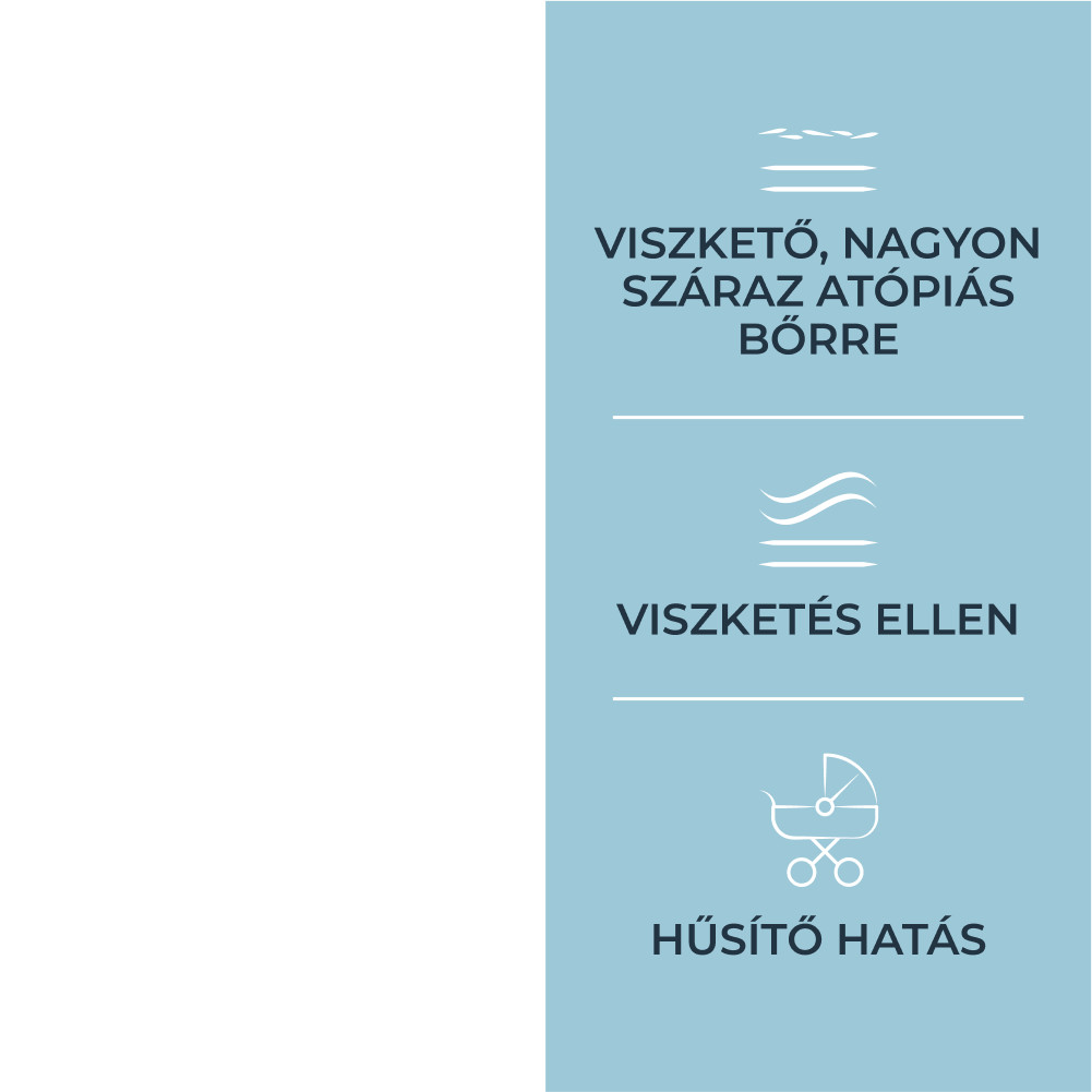 Használata hűsíti és megnyugtatja a bőrt. 60 másodpercen belül csökkentheti a viszketést, akár 6 órán át, így hatása azonnali és hosszantartó. A hozzáadott Symsitive szabályozza a hiperreaktív bőr érzékenységet, növeli a bőr tolerabilitását illetve a stresszorokkal szembeni ellenálló képességet. Polidocanol tartalma szintén bőrnyugtató hatású, a menthoxypropandiol pedig csökkenti a viszketés érzését is. A termék nagy előnye, hogy kézzel való érintés nélkül segít csökkenteni a kellemetlen viszketést. Alkalmazása: 3 éves kortól.