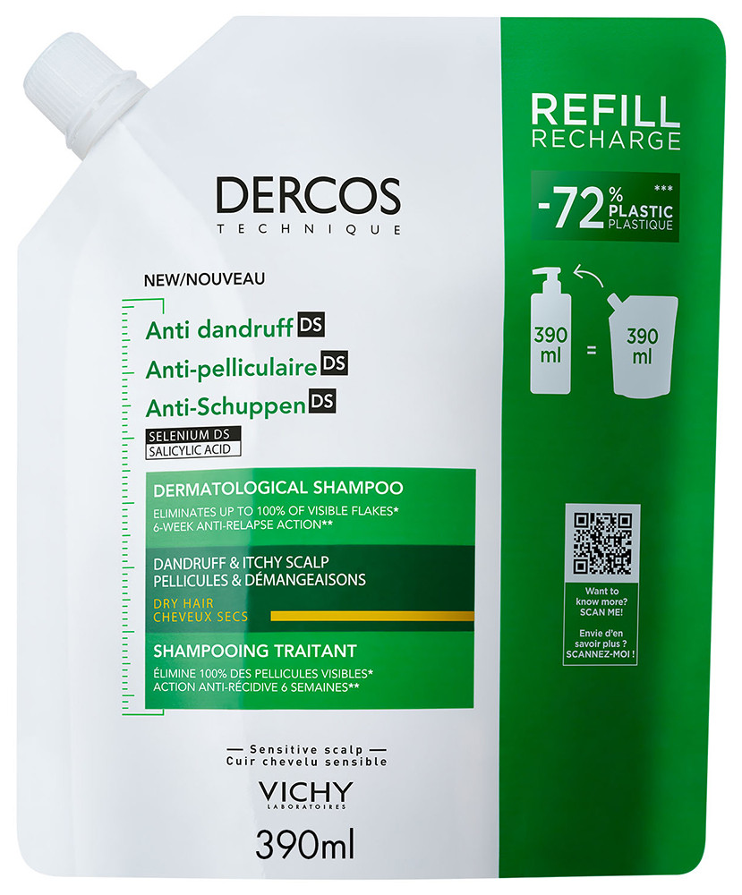 VICHY DERCOS SAMPON korpás és száraz hajra utántöltő 390 ml